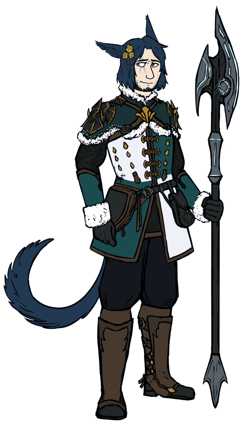 After years spent drifting, he's found employ with a rather eccentric Ishgardian noble lady, serving somewhat reluctantly as her personal adventurer and guide.He's also available as a guide and bodyguard to anybody else who'd care to brave the wilderness. It also happens that he's an excellent cook, and is always more than happy to treat everyone while they're on the road!